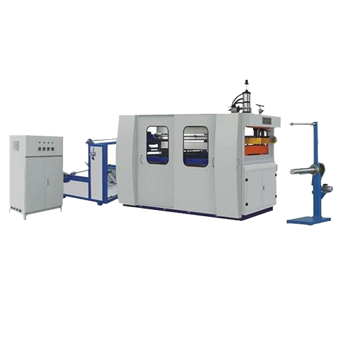 用于连续高效生产一次性餐饮具,即可用塑料硬片成型也可用塑料降解片材成型。