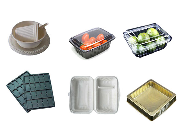 主要适用于BOPS、HIPS、PS、PVC、PET等塑料片材加热成型、计数、堆垛.生产各种敞口型的盒、碟、托盘、碗、盖等塑料 包装制品。如食品盒、蛋糕盒、快餐盒、糕点托盘、超市托盘、医药针剂托盘、口服液托盘。