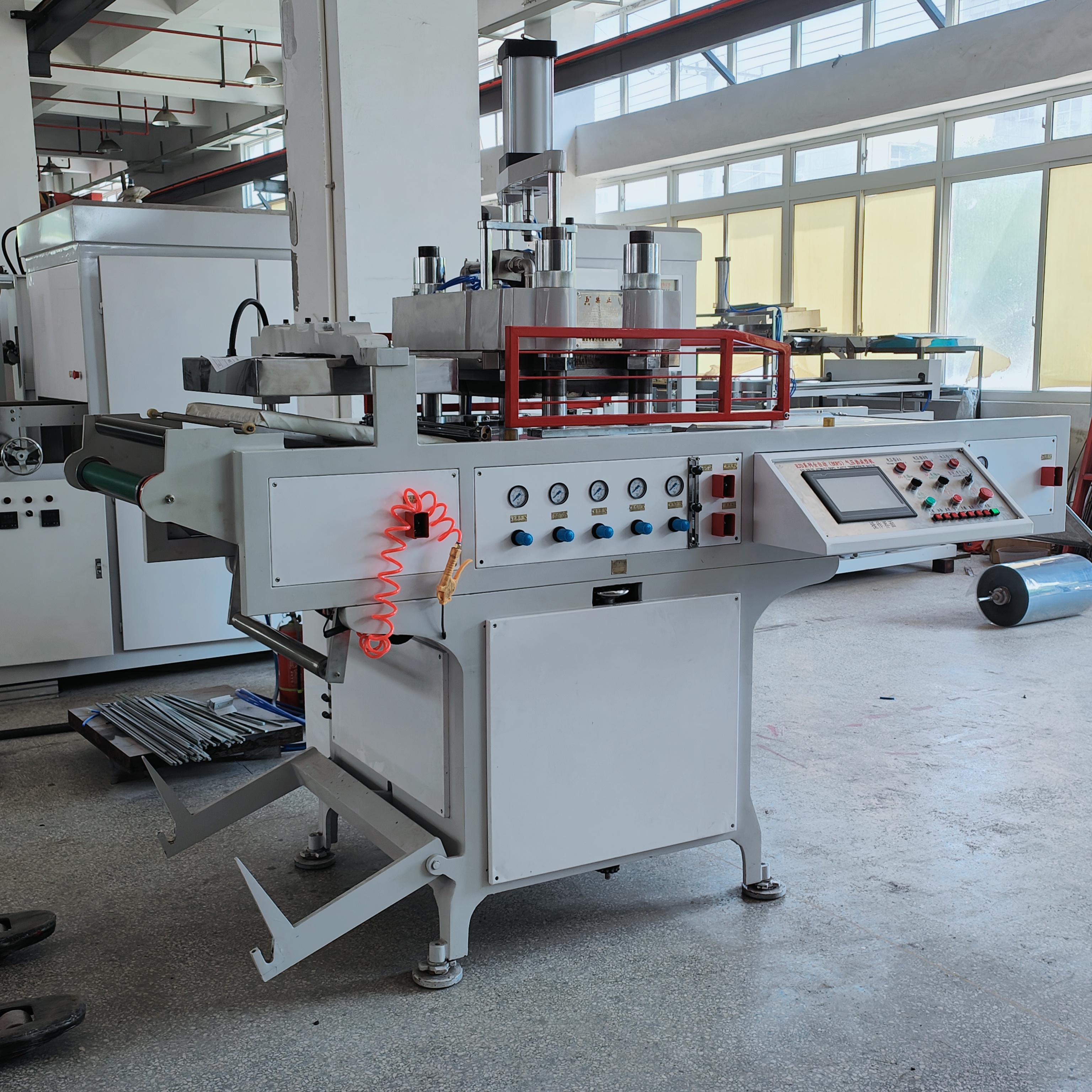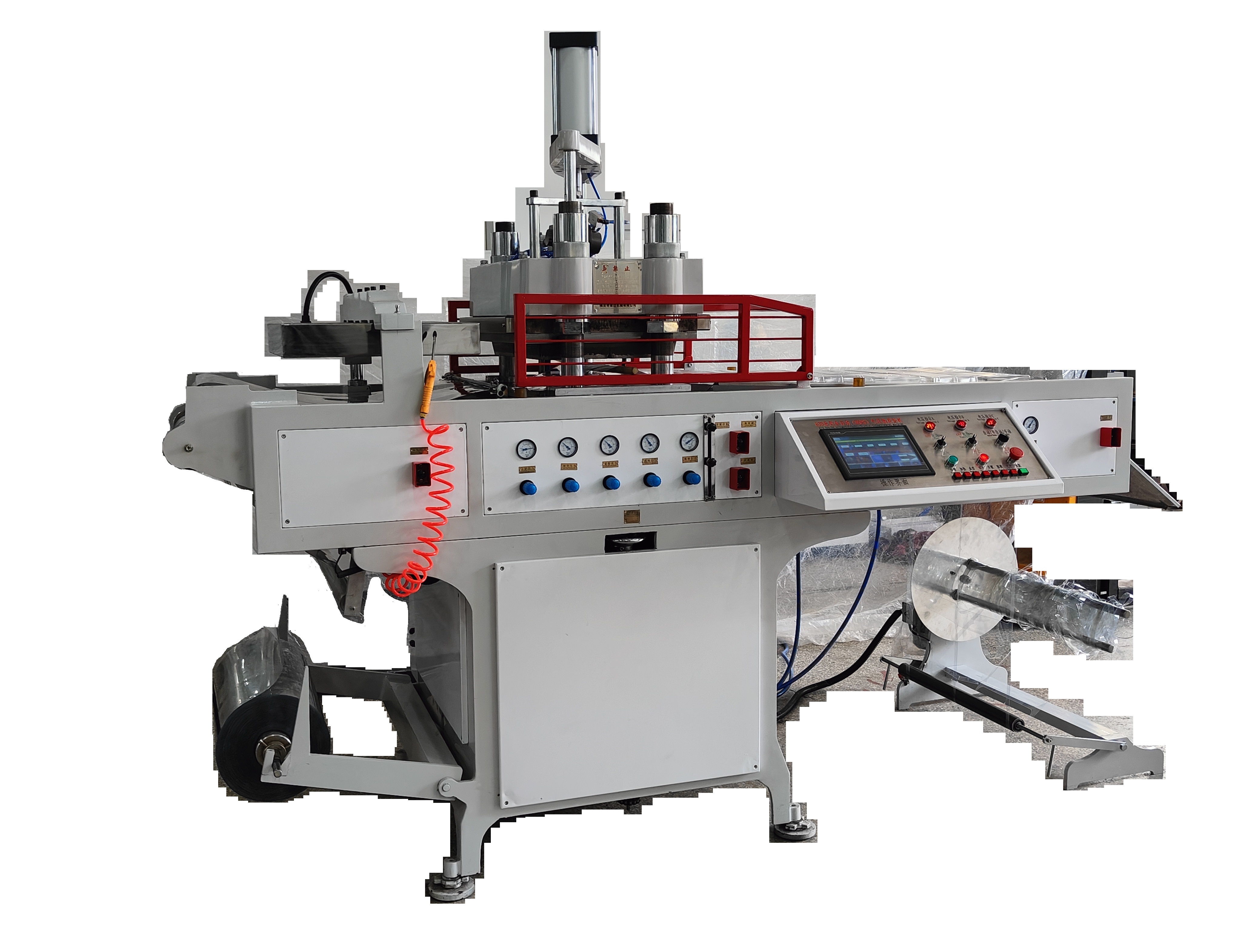 RJD-600×720 Q型(BOPS)塑料气压热成型机采用机--电-气一体化设计由微电脑(PLC)控制,具有手动、半自动、全自动三种运行功能.