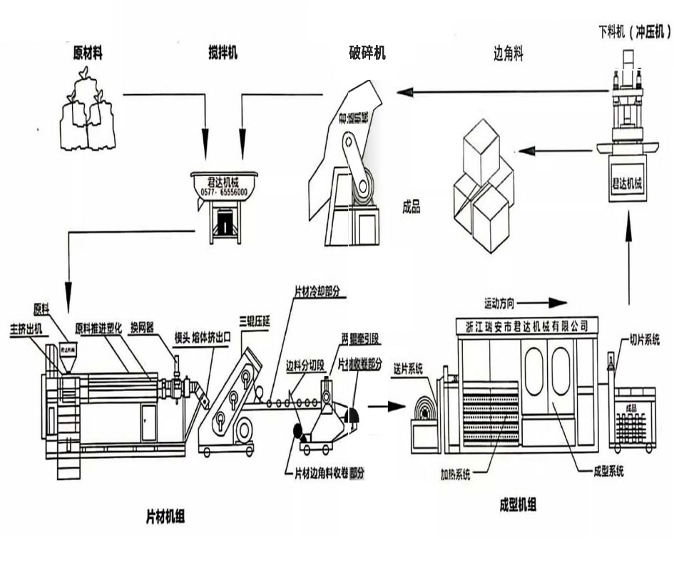 瑞安市君达机械有限公司是是一家专业制造与研发塑胶包装机械的企业, 现主要生产正气压热成型系列、负压成型系列、多工位正负压成型系列及配套产品。本公司产品具有耗能低、省力、 省人工、操作方便、快捷、安全、智能化等特点。 产品远销世界各地。现本公司拥有多项外观、实用新型和发明专利 ,拥有一批高素质的科研人员和员工队伍,具有产品的设计、开 发、生产、安装、服务完整的运行体系。